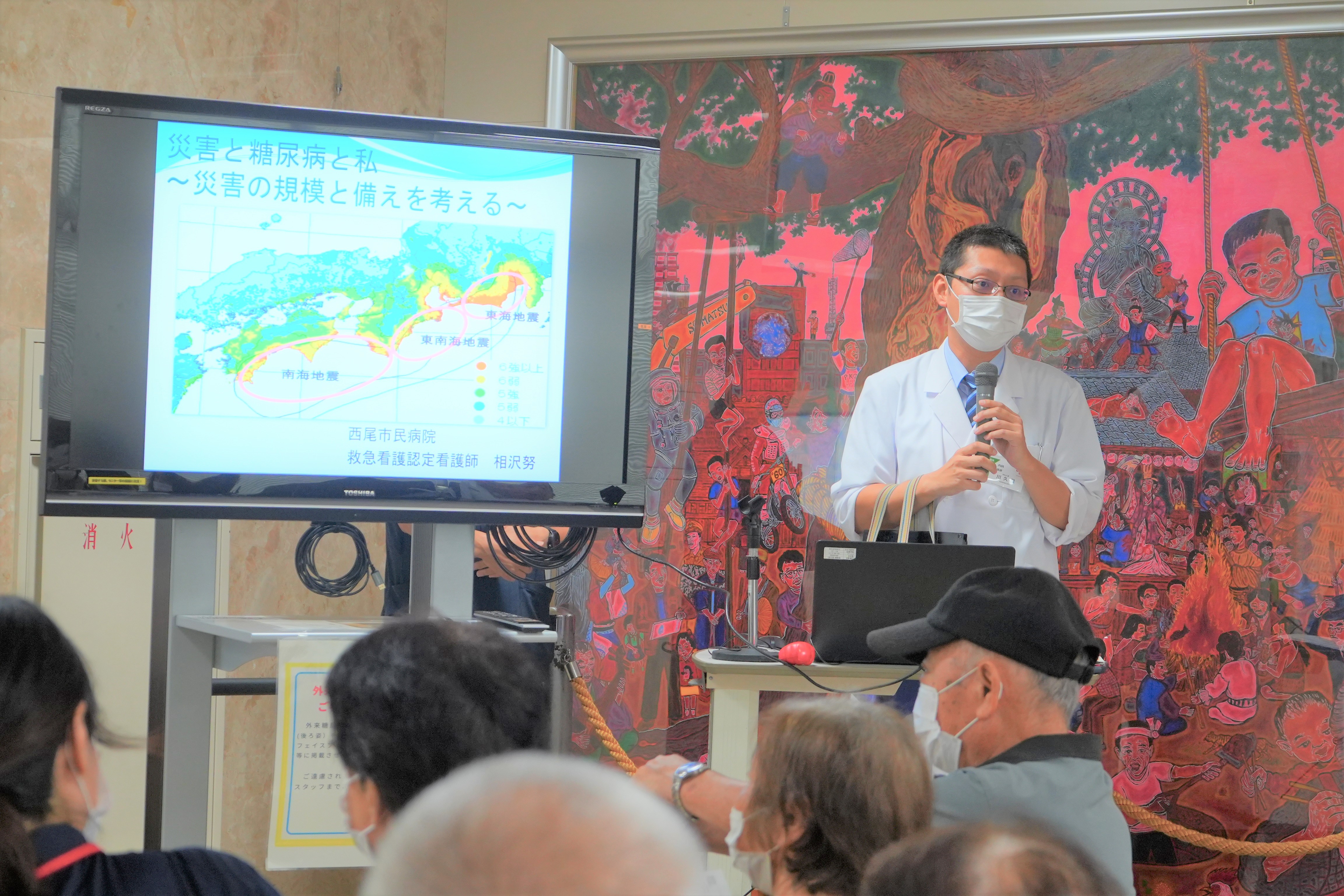 今回は「災害と糖尿病と私 ~災害の規模と備えを考える~」というテーマで当院の救急看護認定看護師である相沢看護師による講演を行いました。