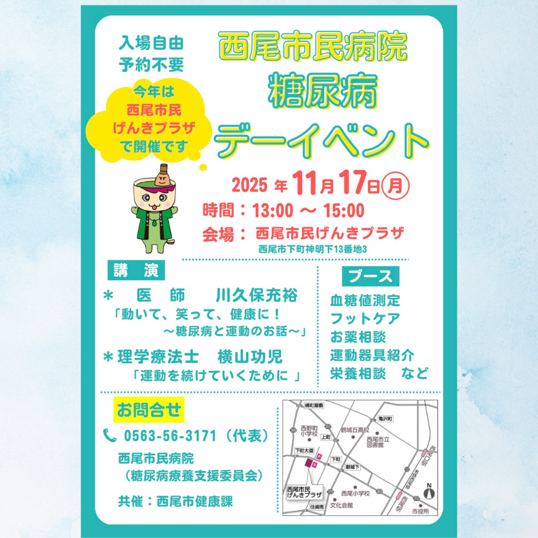 2025年11月17日(月)に、WHOが定めた「世界糖尿病デー」(11月14日)に合わせて第6回目となる「西尾市民病院糖尿病デーイベント」を開催致しました。