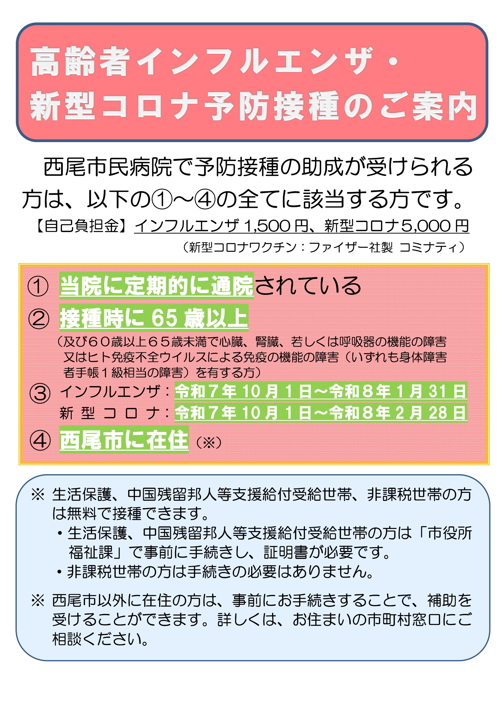 高齢者インフルエンザ及び新型コロナ予防接種について