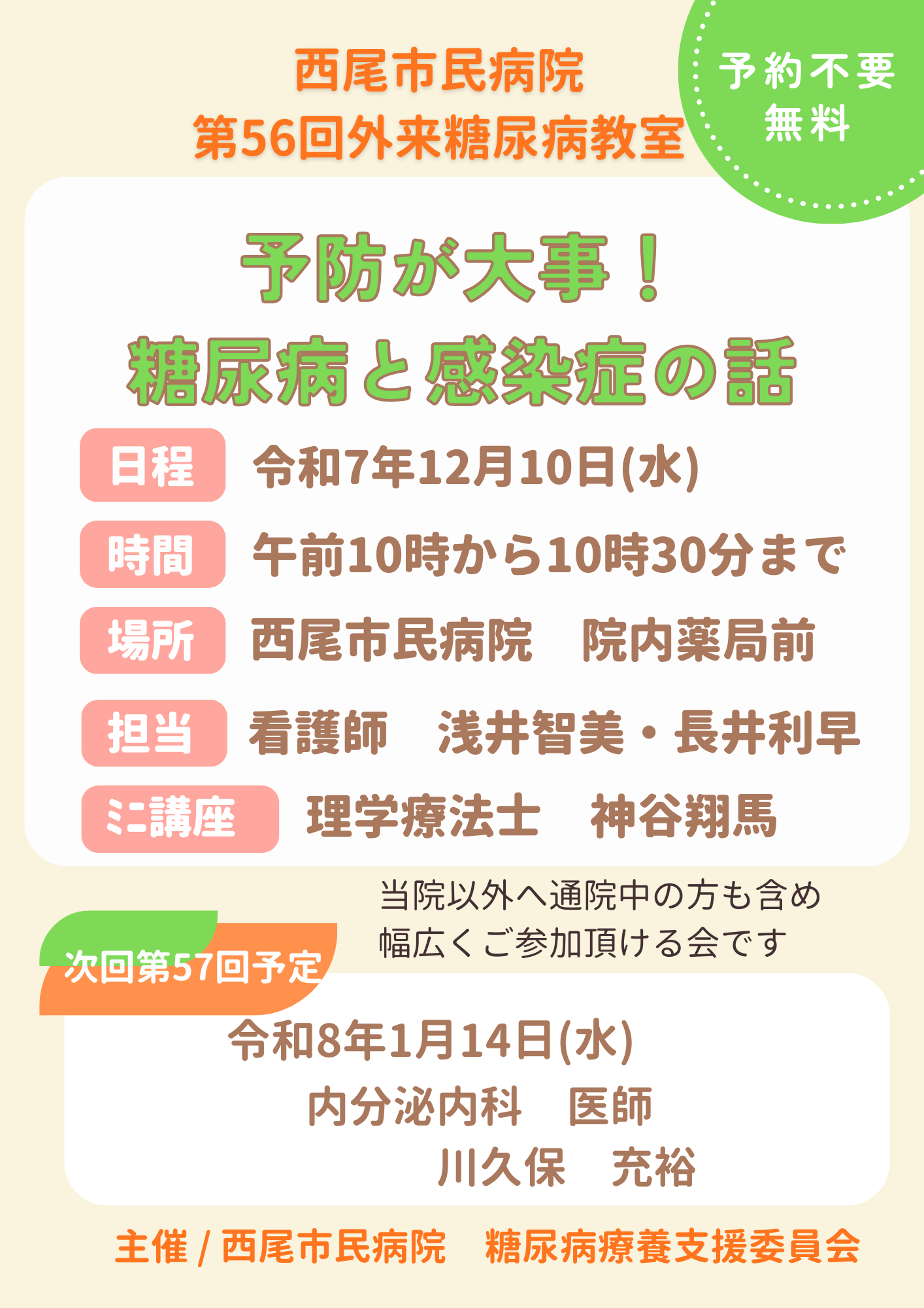 お知らせ第56回外来糖尿病教室(12/10 (水) 10時~)開催のお知らせ